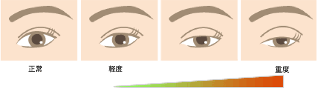 主な治療方法は手術で、上まぶたの皮膚のたるみによる場合は皮膚の切除を行い、眼瞼挙筋の筋力低下などによる場合は上眼瞼挙筋を短縮する手術となります。